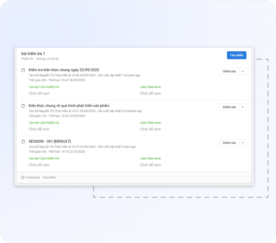 Tạo phiên thi với thời gian và trạng thái linh hoạtTạo phiên thi với thời gian và trạng thái linh hoạt