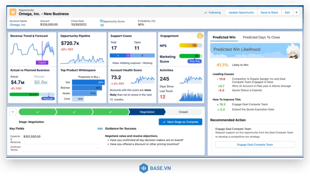 - Tích hợp CRM dự đoán, quản lý quy trình bán hàng và báo cáo hiệu suất kinh doanh.